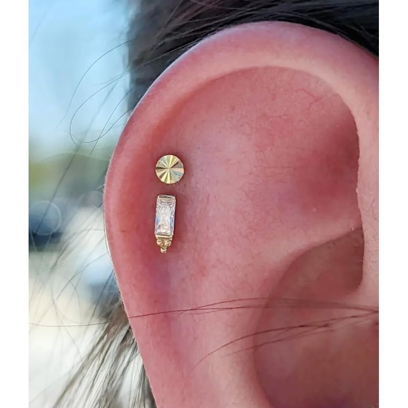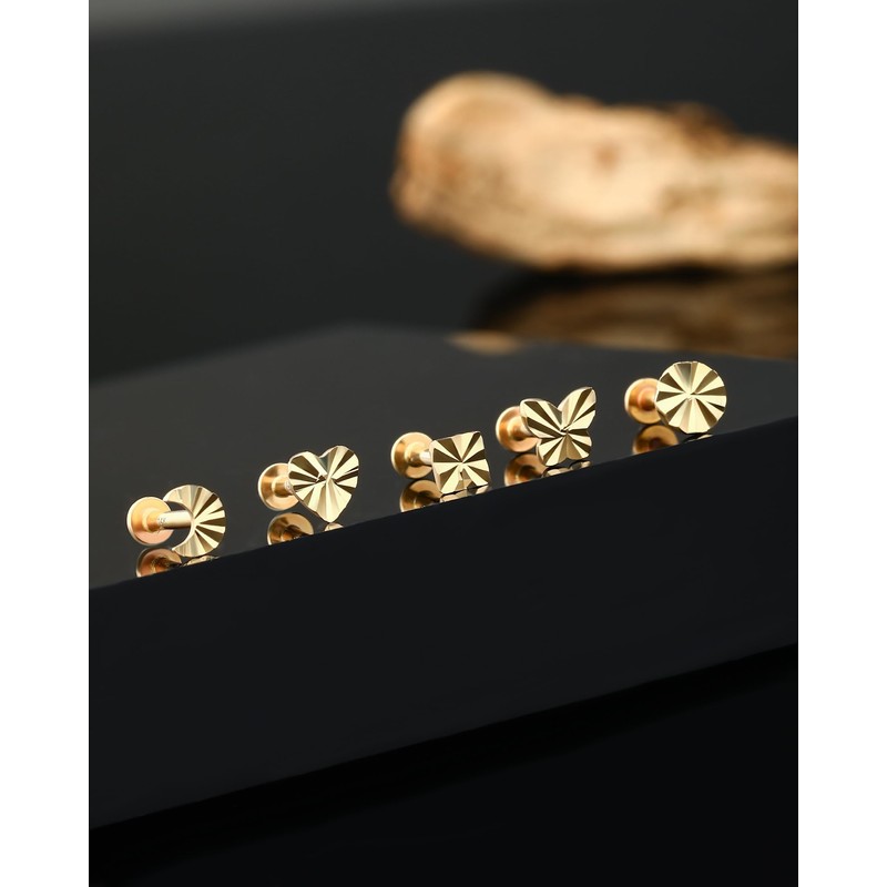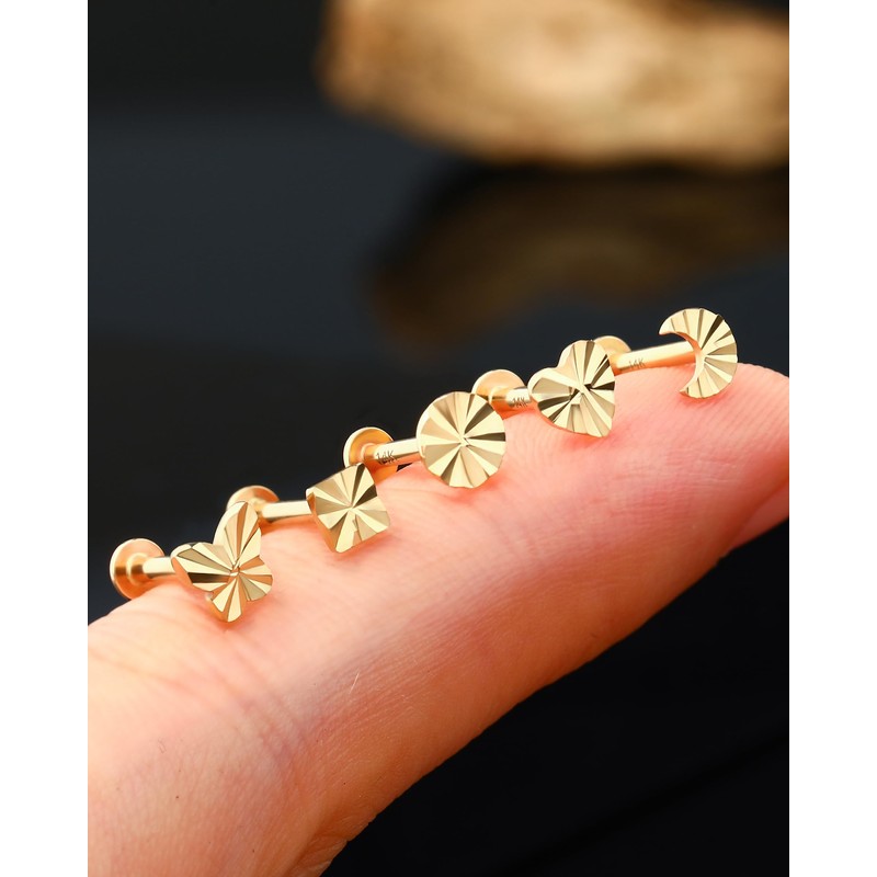 • STYLE:One package contains one piece 14k solid gold cartilage earring,we have five optons for you to choose:butterfly,heart,moon,round,square,also have titanium or 14k gold bar for you.