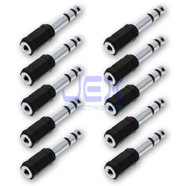 10X Stereo Female 3.5mm Jack to Male 6.35mm Headphone Size Adapter