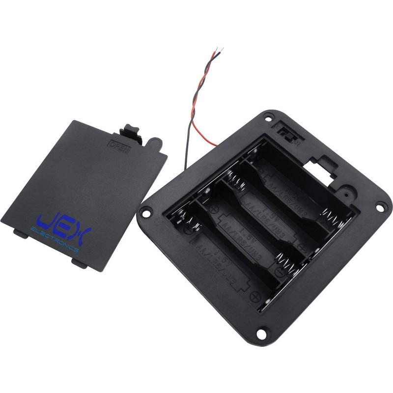 Jex Electronics Four/4X AA Panel Mount DIY Battery Holder Case Box 6V with Power Switch & Wire