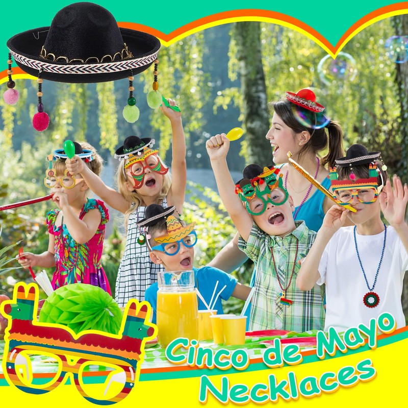 - Classic Mexican Style: the fiesta supplies sombrero feature with different designs, and some have bright colored ball fringes, adorable and attractive, the glasses and necklace are designed with assorted festival elements, like avocados, chili, guitar, taco and more, bright and vibrant