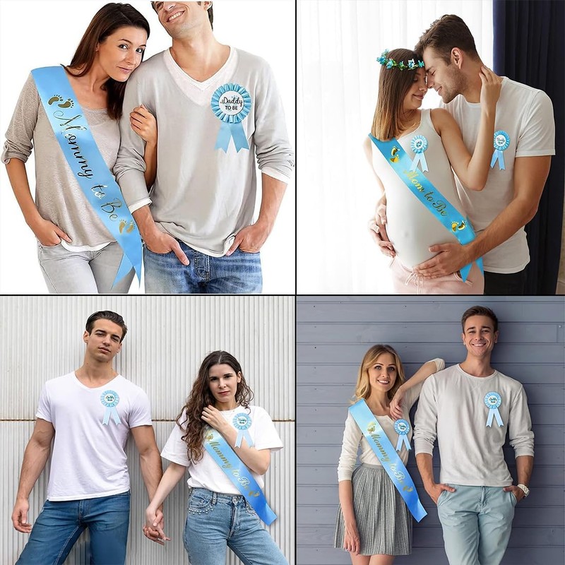 - Exquisite design: Mom to be sash is printed with baby feet and the words "Mummy To Be, Daddy To Be" are written on it.