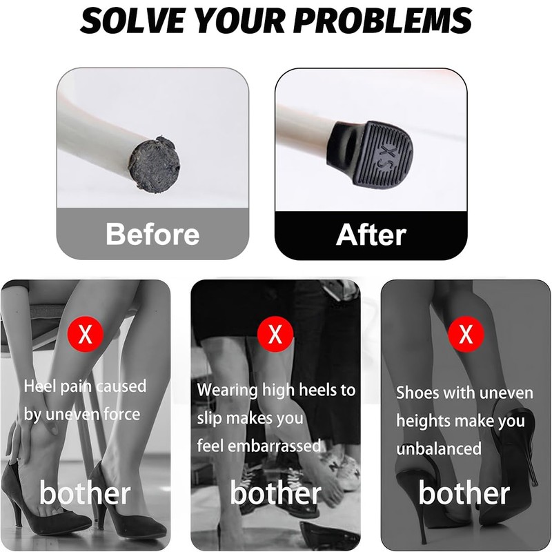 - Anti-slip design: these heel protectors are made of soft rubber with anti-slip strips on the bottom. Heel protectors can dampen the click noise of high heels and prevent slipping when walking on uneven surfaces. The heel stopper of these high heels ensures more safety even on rainy days. Extend the life of your shoes and, more importantly, protect your floors from damage, making your home life more enjoyable.