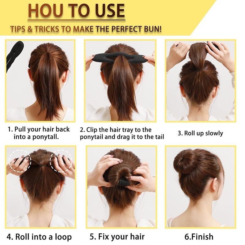 - Einfach zu verwenden; kreieren Sie in Sekundenschnelle einen schönen Chignon. Stecken Sie einfach Ihr Haar durch den Schlitz und drehen Sie es, um den gewünschten Look zu erzielen.