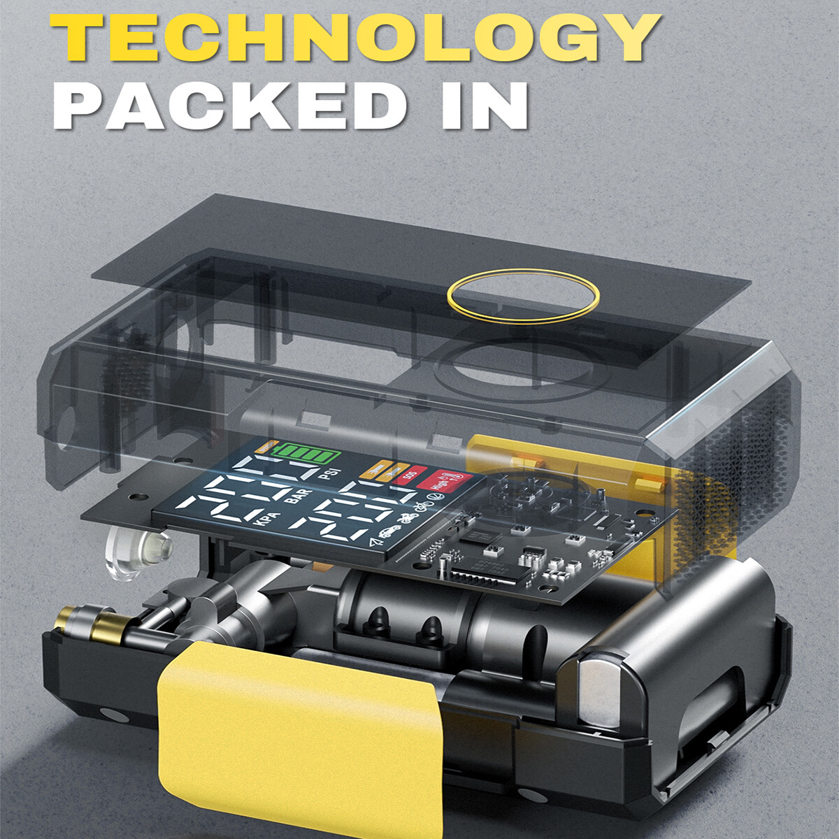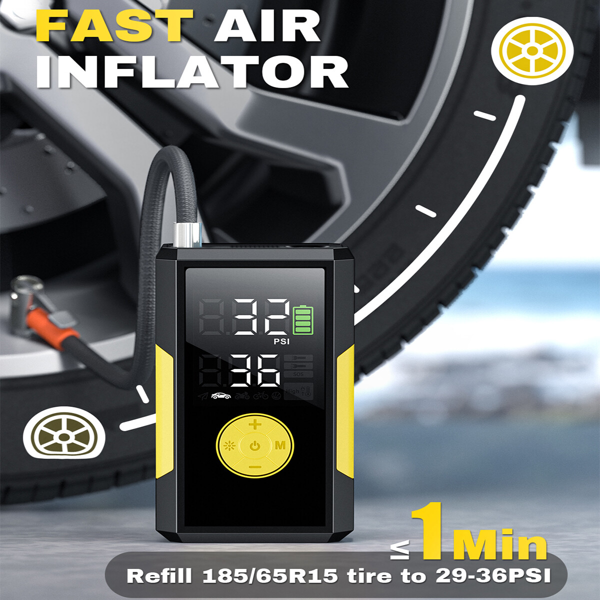 ***Portable air compressor with digital lcd display and led light for illumination. When you use this air compressor, the lcd screen shows both the preset pressure value and the real time pressure value.
