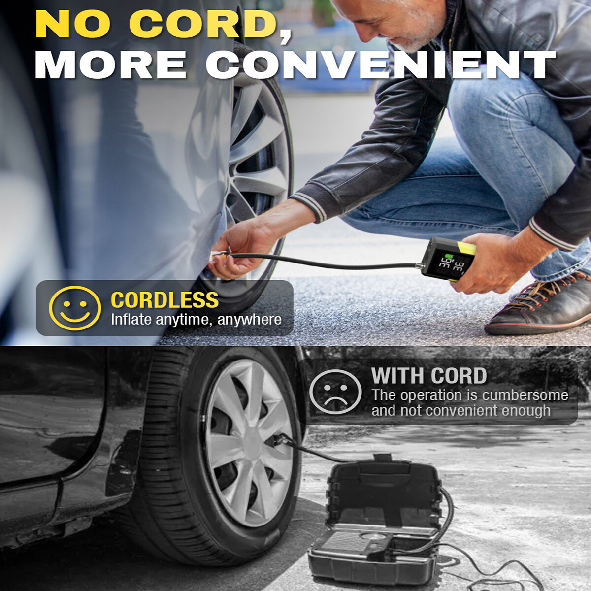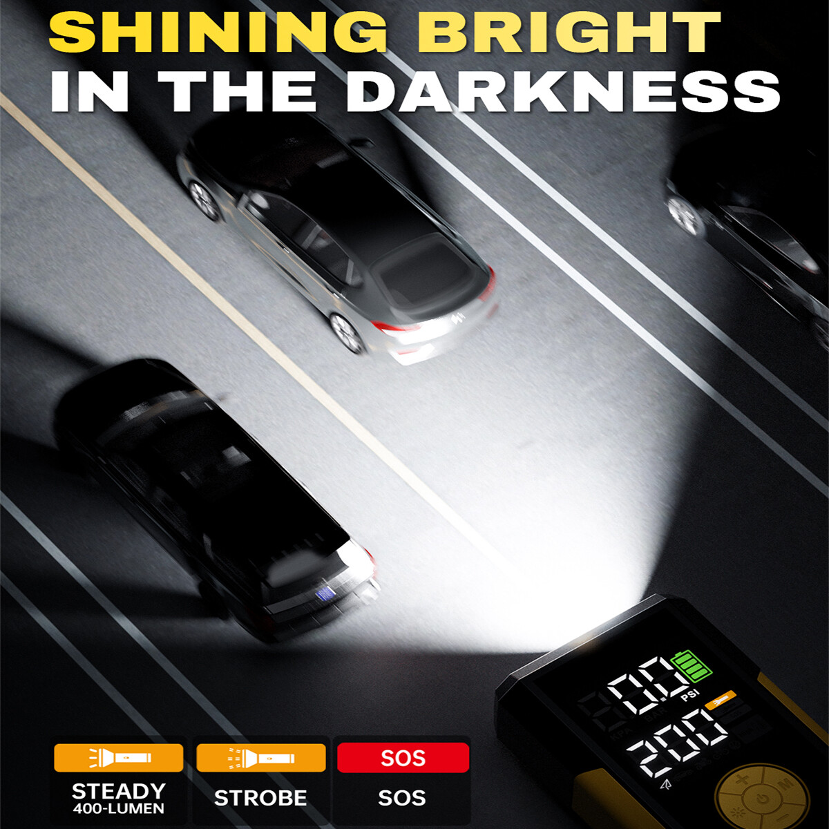 ***A lways Prepared: Be ready for an emergency. Stay safe and save money with properly inflated tires. Avoid gas station visits or a tow truck and use the built-in LED flashlight for low light situations.