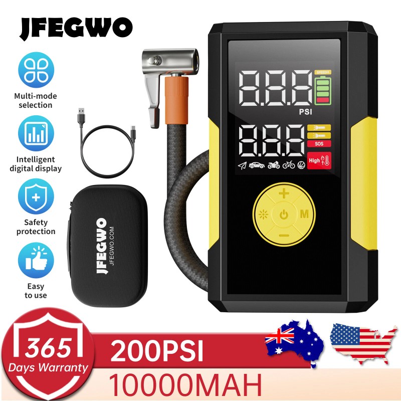 JF.EGWO Car Air Pump Compressor 200PSI Tire Inflator Electric Portable Auto Air Pump 12V