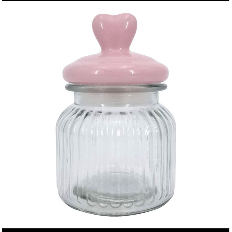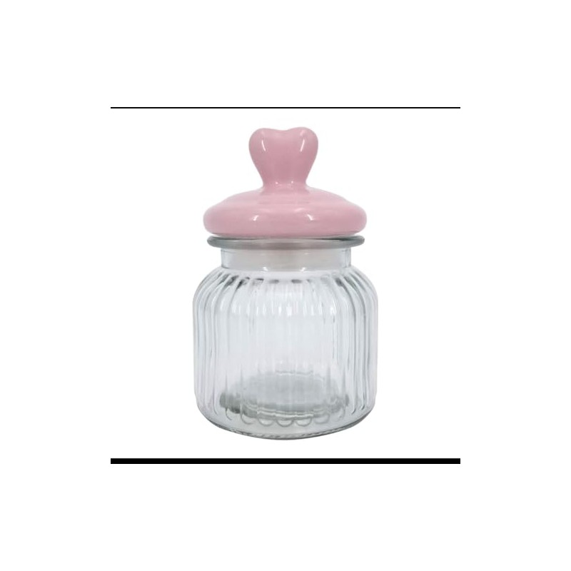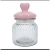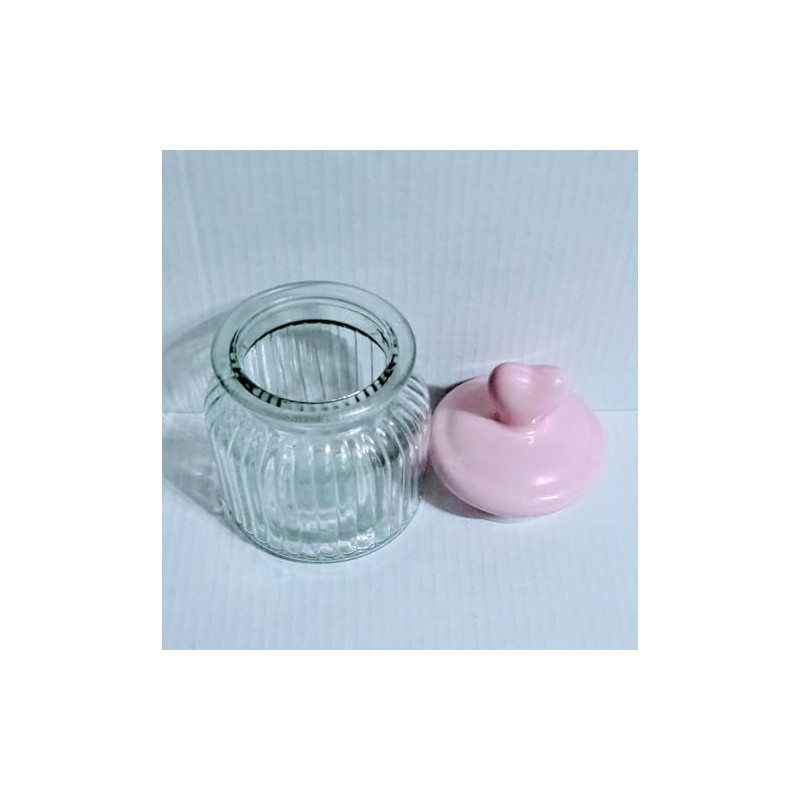 JF- Valentine's Glass Container Jar, Burgundy, Pink or Clear Ceramic Lid w/Heart Shaped Lid Mother's Day Birthday (Clear Jar)