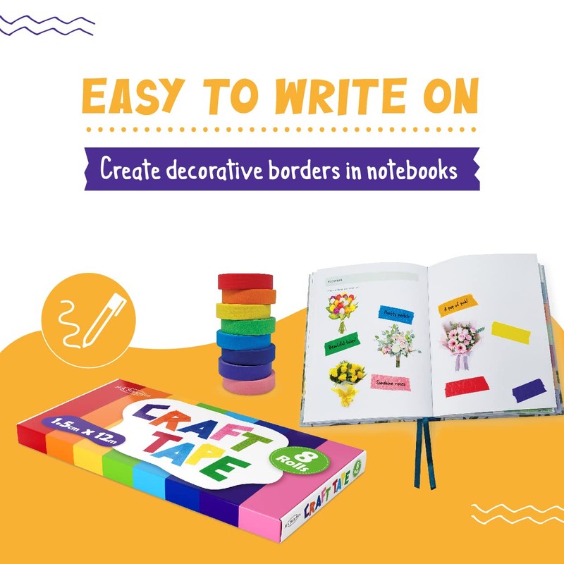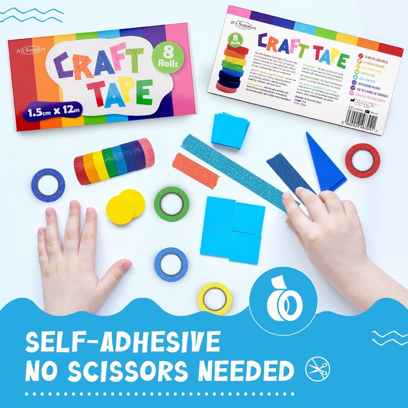 Introducing JFA Supplies 8 Assorted Colours Masking Tape Set, the ultimate solution for all your crafting, DIY, and organising needs. This premium set comes with 8 vibrant colours that add a creative touch to your projects while offering an efficient solution for labeling and organisation. Made from high-quality materials, our masking tapes are easy to tear, self-adhesive, and writable. Each roll measures a generous 12 meters in length, ensuring long-lasting use across various applications. Designed to adhere well to a range of surfaces, these tapes are perfect for home improvement projects, classroom activities, and more.