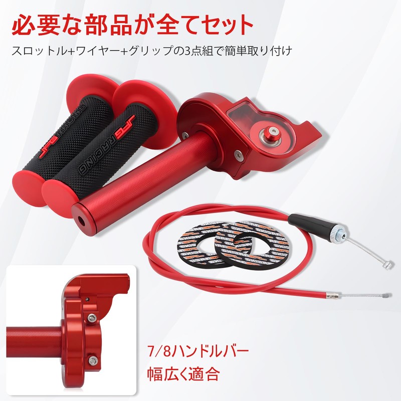 JFG Bike Throttle Kit Visual Throttle + Throttle Wire (Throttle Cable)+Grip+Spacer 7/8" 22mm Aluminum Universal Motorcycle Off-Road Motorcycle Motocro Bike Throttle Red