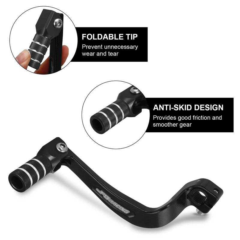 - FOLDABLE TIP - The shifter lever's tip is foldable. When the motorcycle collides, rubs or falls, the shift tip will contract, avoiding unnecessary breaks or damage caused by hard collisions.