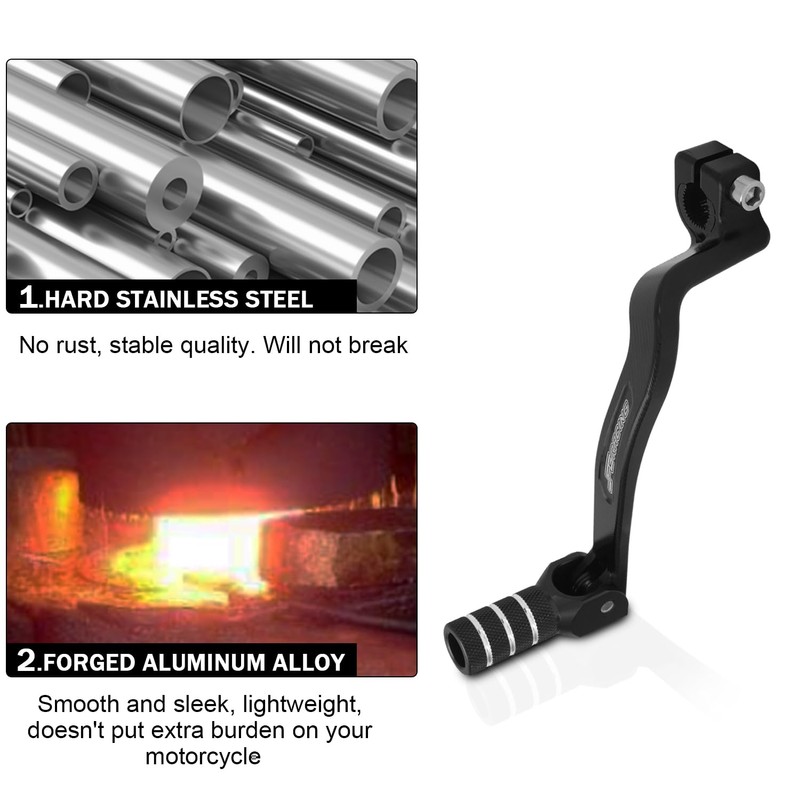- PREMIUM MATERIAL - Made of T6-6061 aluminum alloy, which is light and durable, friction-resistant and not easy to break. The selection of high-quality aluminum alloy materials ensures the good performance and long service life of the motorcycle gear shifter lever.