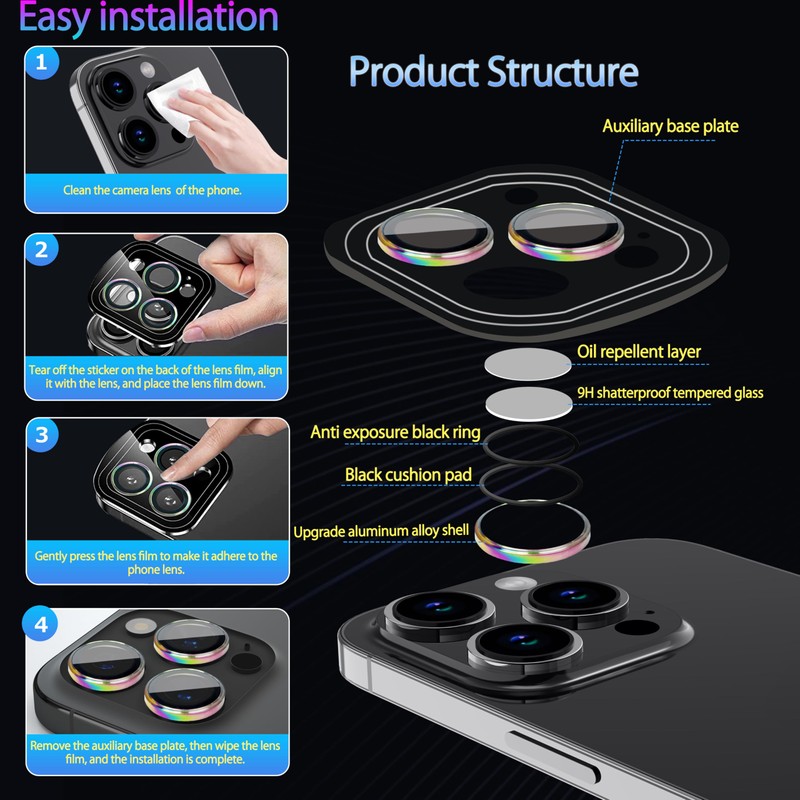 - Lens Protection:Uses 2024 newly upgraded aviation metal and 9H tempered glass,give featuring maximum protection from your phone camera from scratches, scrapes,and bumps