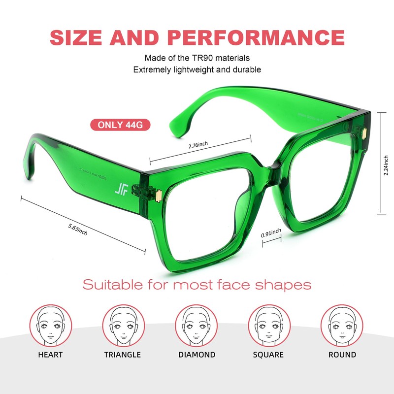 JFXQDR Oversized Blue Light Blocking Glasses for Women Men, Square Thick Frame Eyeglasses Anti Eyestrain & UV Glare RF6211 (Basil Green)