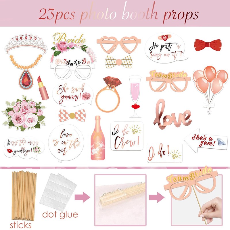 JGA Photo Box Team Bride 23pcs Photo Booth Props Inflatable Photo Frame Photo Accessories for Hen Night Pink