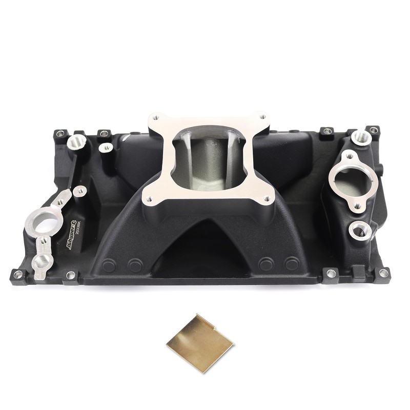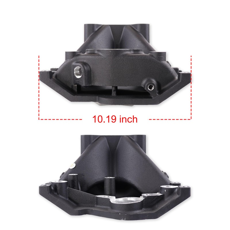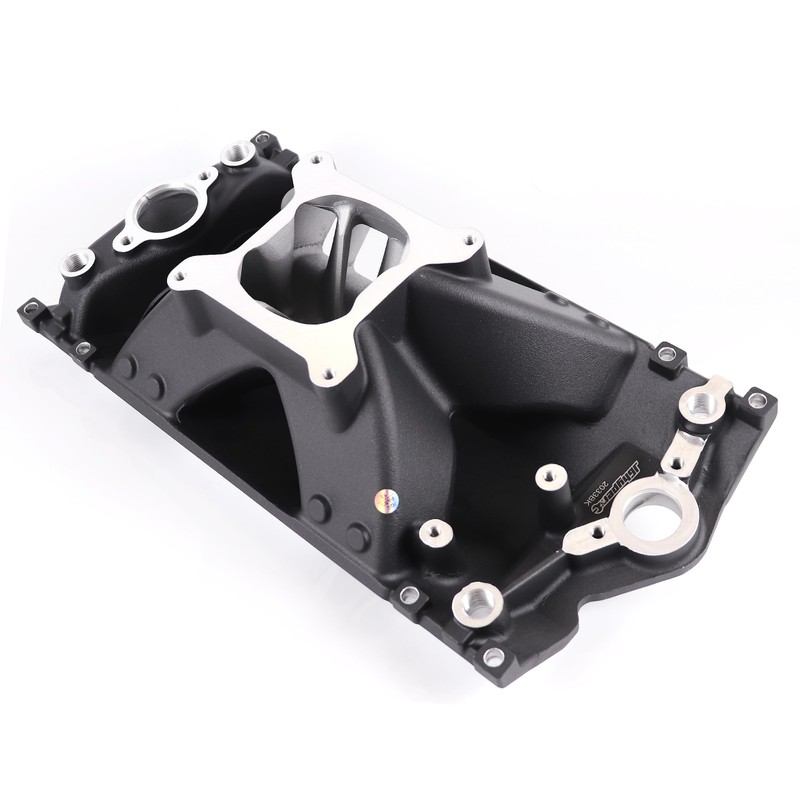 - Engine Block Deck Height:Standard deck //Carburetor Mounting:4-barrel square bore //Intake manifold Color: Black