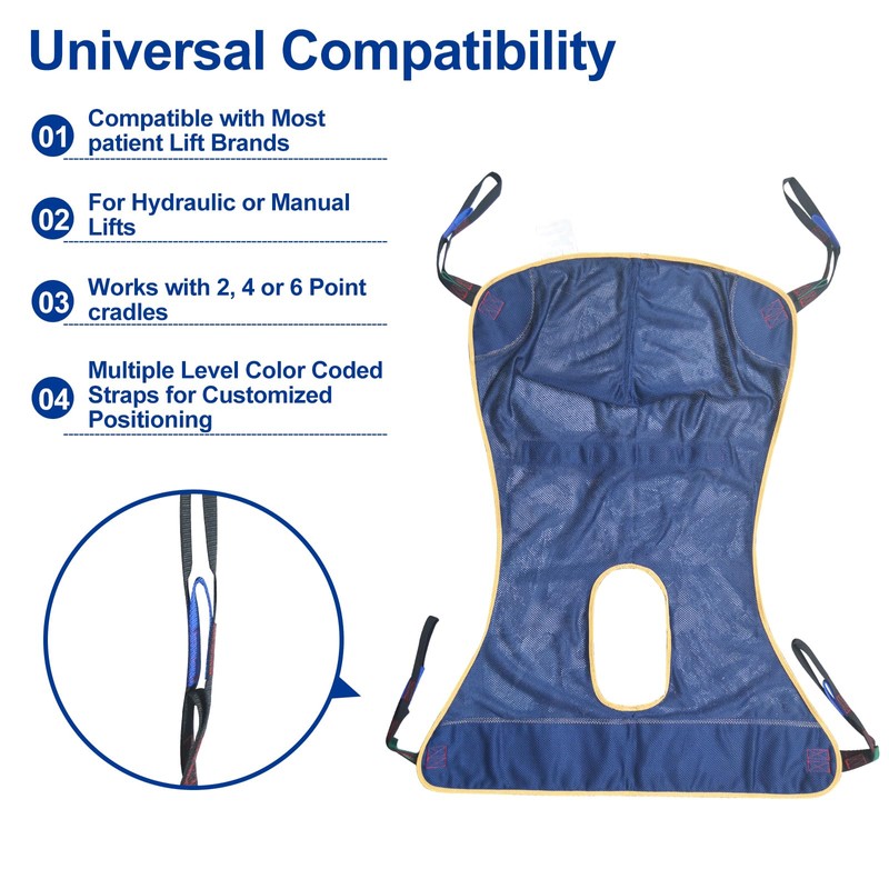 - Easy To Clean: Ideal for facilitating the use of the commode, the lightweight mesh lift sling features a reinforced opening for easier bathroom use.