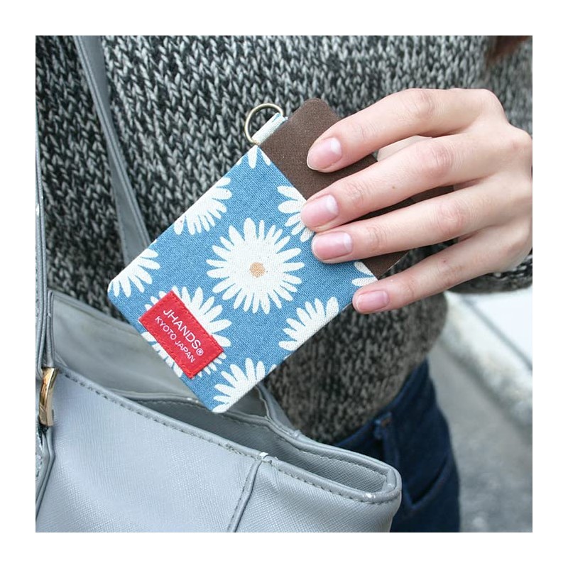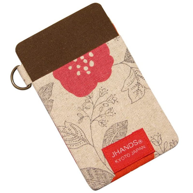 JHANDS Pass Case with D Ring (Natural), Garden Scarlet