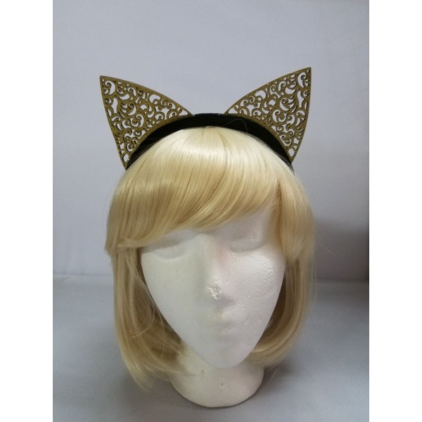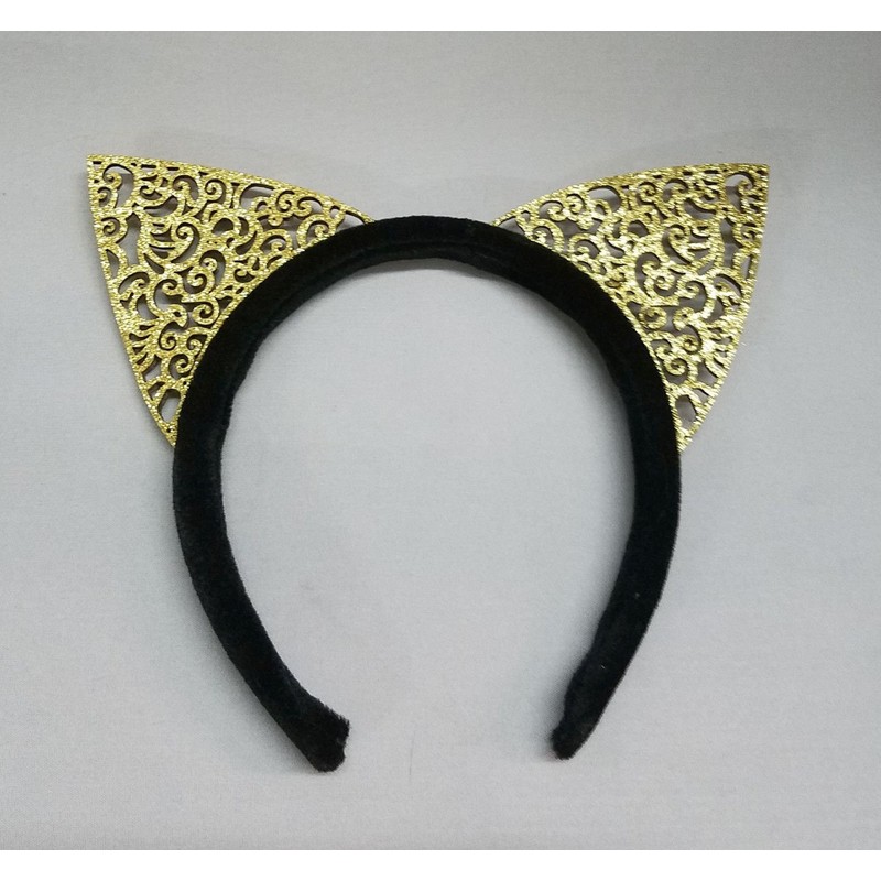 Jhats Cat Ears Headband Gold Glitter Filigree