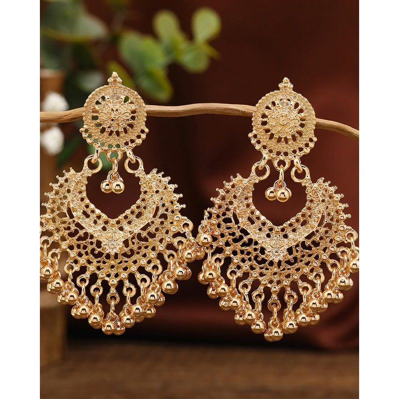 Jhumkas Indian Earrings for Women Gold Chandelier Earrings Ethnic Gold Tassel Earrings Jhumkas Earrings Traditional Indian Boho Earrings Wedding Party Prom Gold Jewelry Gift