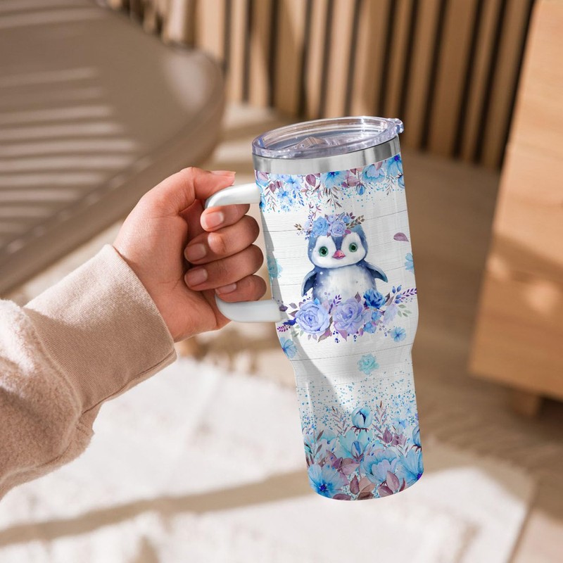Jiaazerd Penguin Tumbler, 40 oz Insulated Water Bottle With Handle Straw Lid for Penguin Lovers (Color 2)