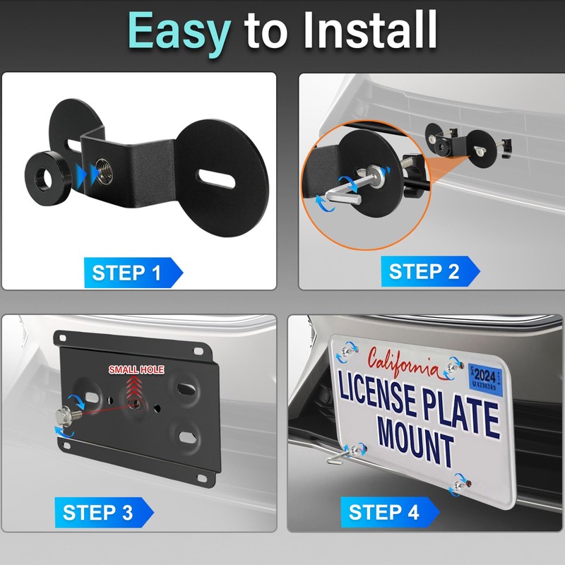 - ✅【LICENSE PLATE HOLDER KIT】This grille mounted license plate holder is easy to install install and just as easy to remove, leaving no trace that it was ever there. The new upgraded license plate holder makes your car look cooler and more fashionable.