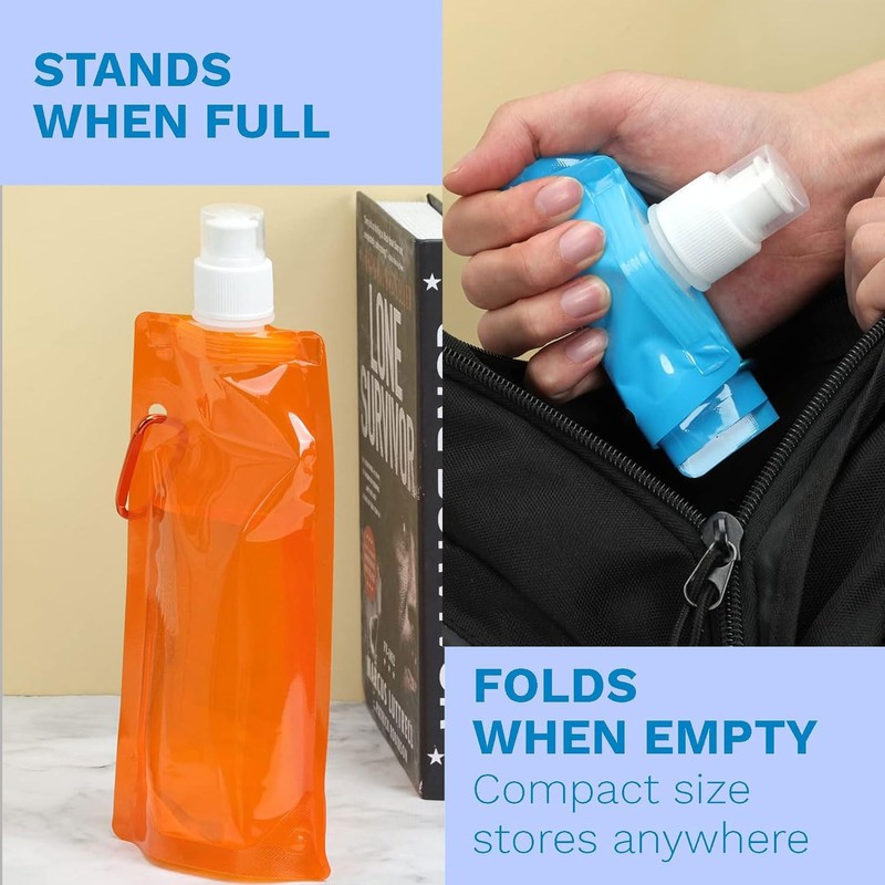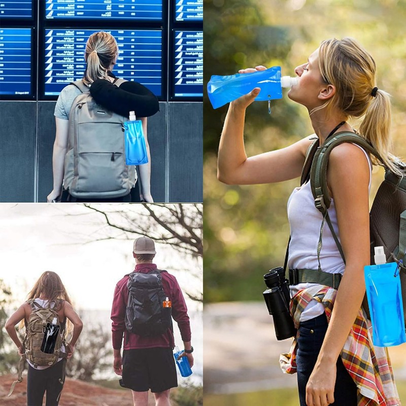 - Practical: easy to fill and easy to roll. Each foldable water bottle is equipped with a metal clip that has been designed, the push-pull cover and the protective cap ensure a leak-proof seal.