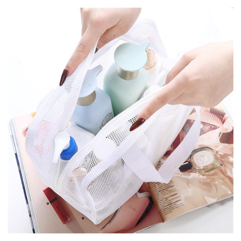 JIALIANER Toiletry Bag Travel Cosmetic Bag, Can Store Towels, Shampoo, Toiletries, Mesh Bath Bag, Portable Bath Bag with Drain Port (White(30 * 10 * 20))