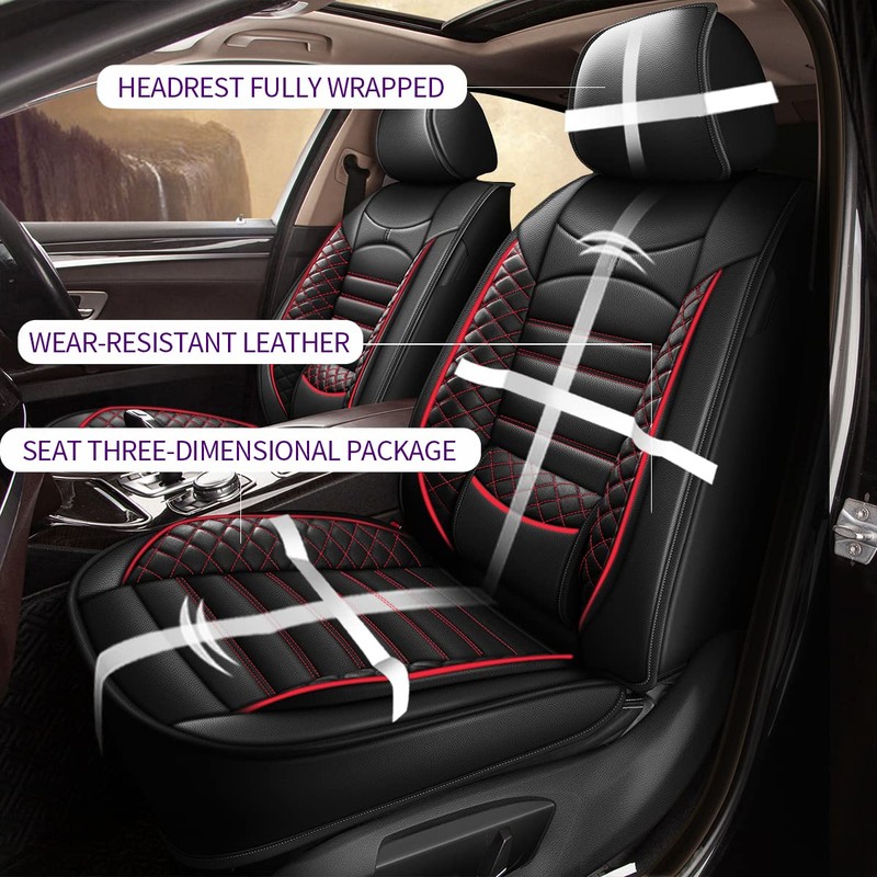 - 🚗Premium Material-- Our seat covers are made of premium faux leather, high-elastic sponge, heat-pressed non-woven fabric and the non-slip base fabric. Soft and comfortable, will add great comfort to your driving.