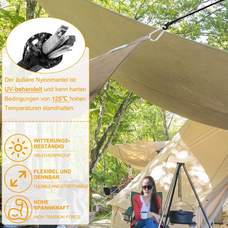 - SUITABLE FOR OUTDOOR ACTIVITIES The elastic rope of our rubber tensioner with hook is UV treated and can withstand all weather conditions. Compared to other luggage straps with hooks, it provides a secure and stable attachment. With its 8mm diameter and high-density nylon sheath, the rope retains its elasticity even with frequent use
