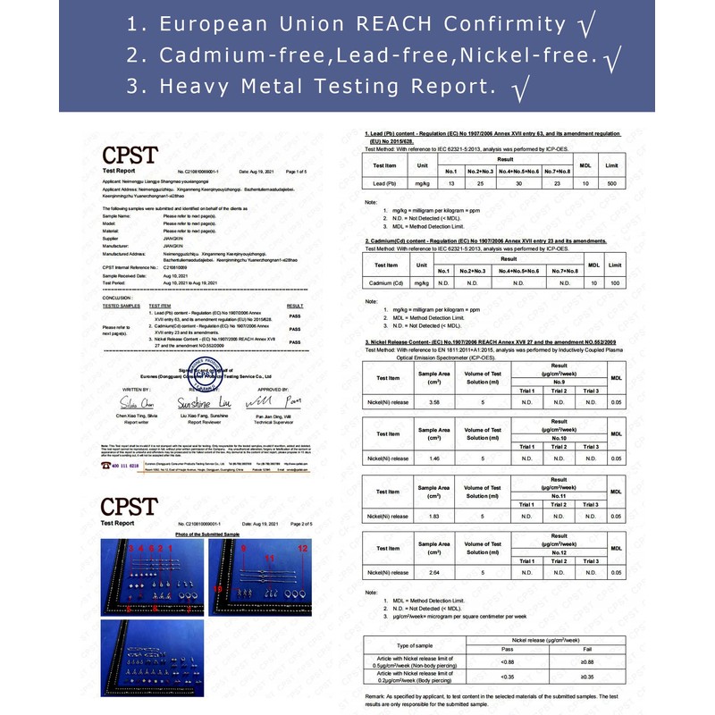 - ❤ All JIANGXIN jewelry have passed European REACH Heavy Metal Test. Cadmium-free, Lead-free, Nickel-free, Safe to wear!