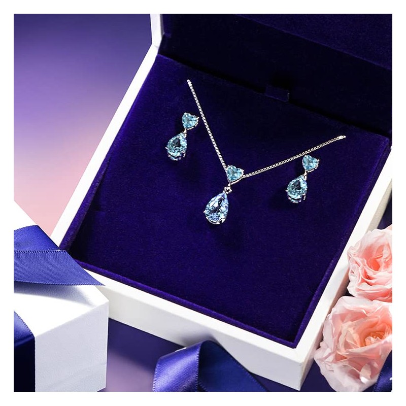 JIANGXIN 18"~20" Pear cut Gemstone 925 Sterling Silver Pendant Necklace Drop Earrings Jewelry Set for Women Heart Pendant Necklace Heart Earrings (Aquamarine)