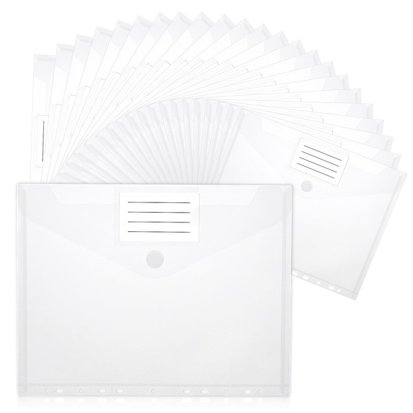 - Dimensions 30.5 cm x 24 cm (width x height) classic white translucent colours for a direct view of the contents. Pack of 24 high-quality A4 document bags, ideal as a document folder, travel bag for office, school and travel.