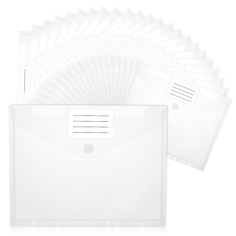 JIANTA 24 Document Wallets A4 Transparent Document Folders Wallets for Documents Organising with Hole Edge Velcro Fastening and Label Pocket White
