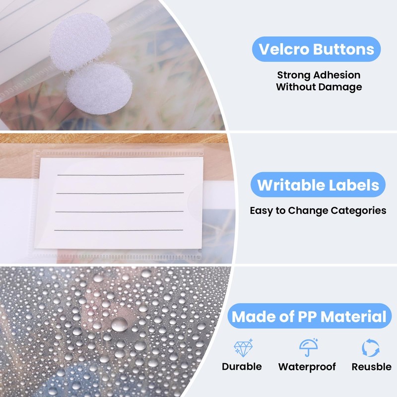 - The A4 file folder made of PP with Velcro closure, which is safe, non-toxic, environmentally friendly and waterproof and protects your files, more durable and robust than a normal press stud and does not tear easily.