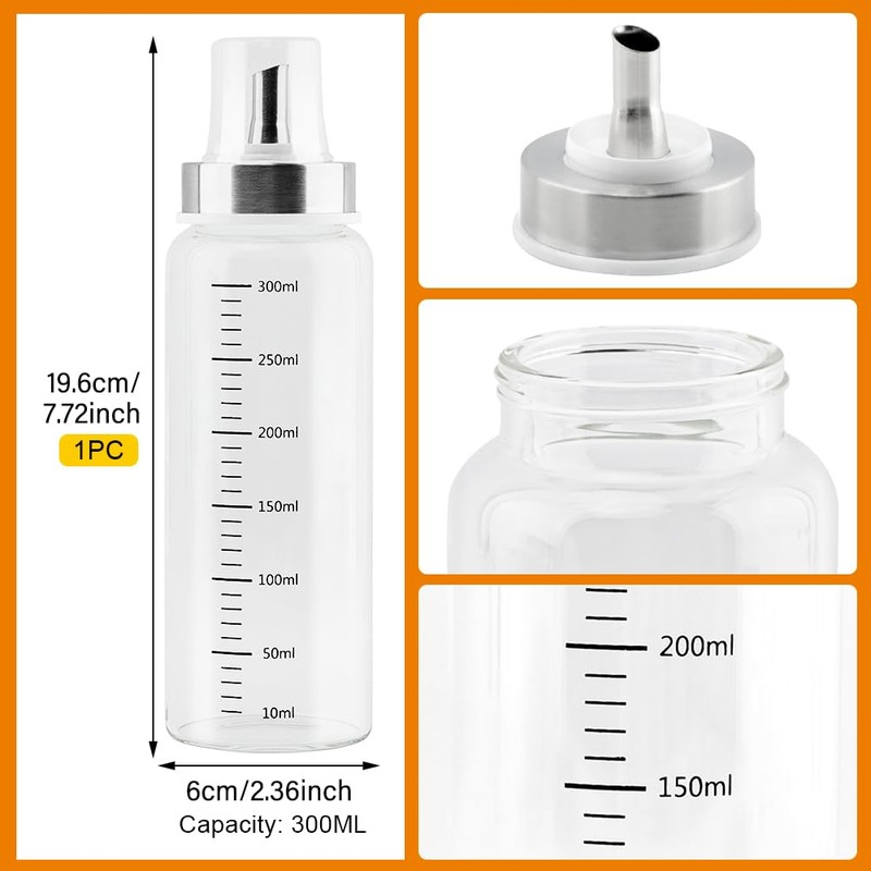 JIANWEI Honey Dispenser, 10 Oz No Drip Maple Syrup Dispenser, Clear Syru-p Dispenser Pot with Scale Display, Automatic Reflux Glass Coffee Syru-p Dispenser for Bread, Coffee or Tea(SIZE:1)