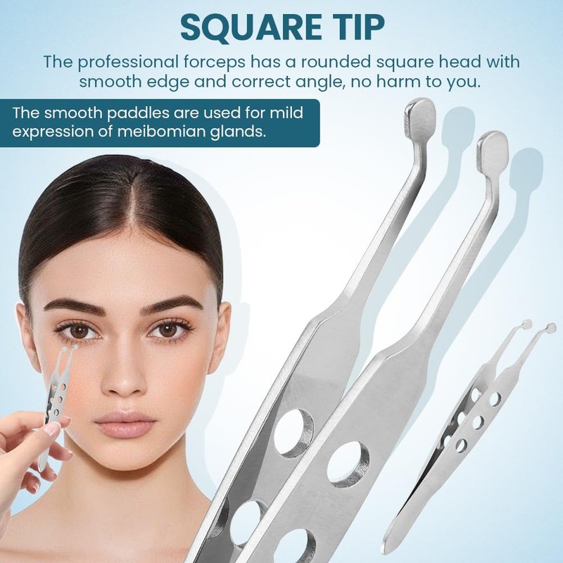 - 【SQUARE TIP】The professional forceps has a rounded square head with smooth edge and correct angle, no harm to you. The smooth paddles are used for mild expression of meibomian glands.
