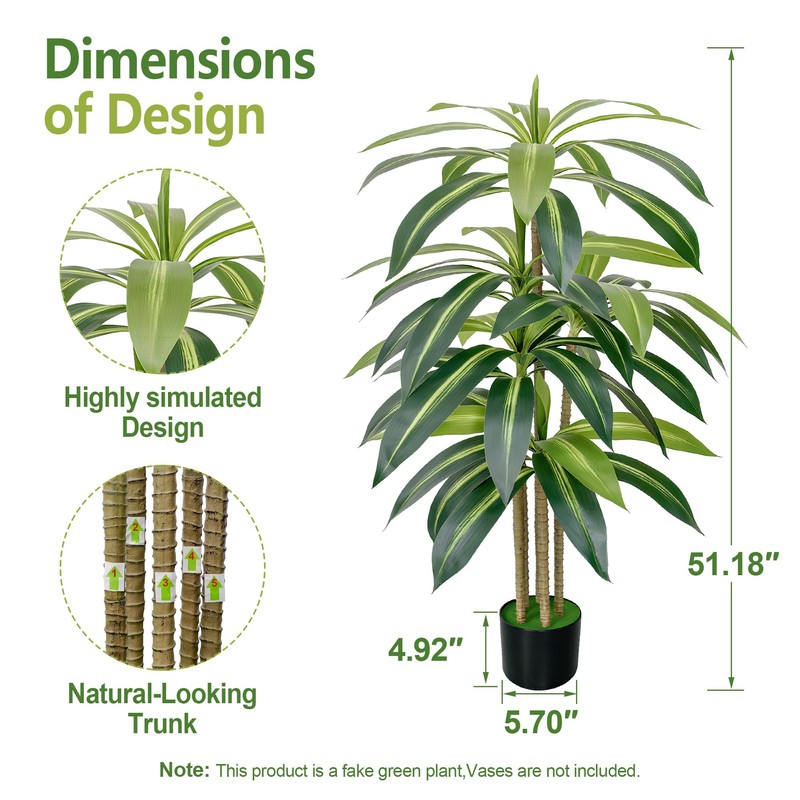 JiaoBaba Artificial Dracaena Tree 4.3FT Dracaena Artificial Plant with Natural Wood Trunk and Lifelike Leaves Artificial Plants for Home Office House Decor Indoor