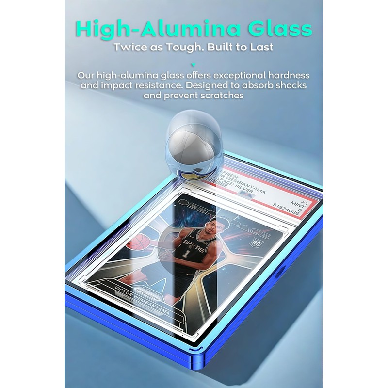 - High Alumina Glass: Enjoy crystal-clear visibility and superior durability with our premium High Alumina Glass. This high-quality material not only offers a scratch-resistant surface but also maintains its clarity over time, allowing you to showcase your cards in all their glory while ensuring long-lasting protection.