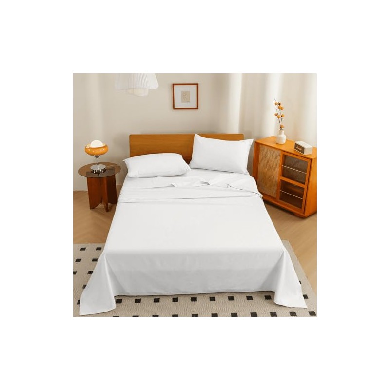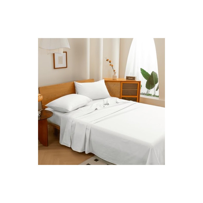 JiaPoem 100% Organic Cotton Sheets Set, 4-Piece Percale Bedding, Soft & Breathable,Deep Pocket Fits Mattress up to 24", Wrinkle & Fade Resistant, Hypoallergenic (White,Queen (U.S. Standard))