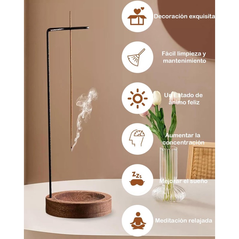 - 【Material de calidad】: porta incienso está hecho de leña y hierro, sin quemar, superficie metálica lisa sin pozos, borde de lluvia de moda, solo necesita limpieza, se ve limpio y liso, pero no áspero, es una opción para la decoración del hogar.