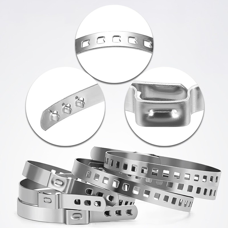 - Hose clamps simply adjust the insertion hole according to the pipe size with the reverse locking design, and then clamp the clamp with pliers to achieve a secure lock.