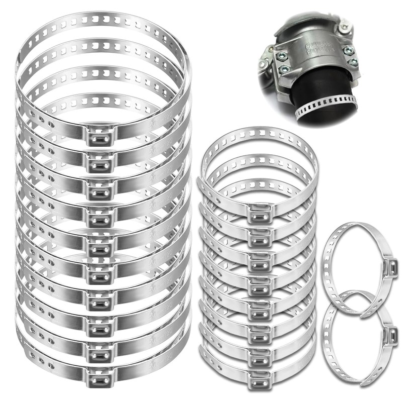 Jiavlyx 20 pieces stainless steel CV hose clamps set, 10 pieces 20-50 mm/10 pieces 50-120 mm adjustable clamps, CV axle cuffs clamps, hose clamps, for ventilation air duct, automotive tubing