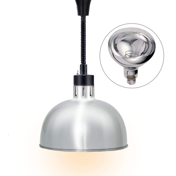 JIAWANSHUN Food Heat Lamp Food Warmer Lamp 60-180mm φ290mm 250W Bulb Commercial Food Warmer Retractable Heat Lamps Catering Food Warmers Restaurant Supplies or Home Food Service(Silver) 110V