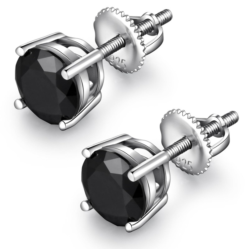 JiaYang Black Diamond Stud Earrings with Screw Back Sterling Silver Cubic Zirconia Stud Earrings for Women Men - 5MM