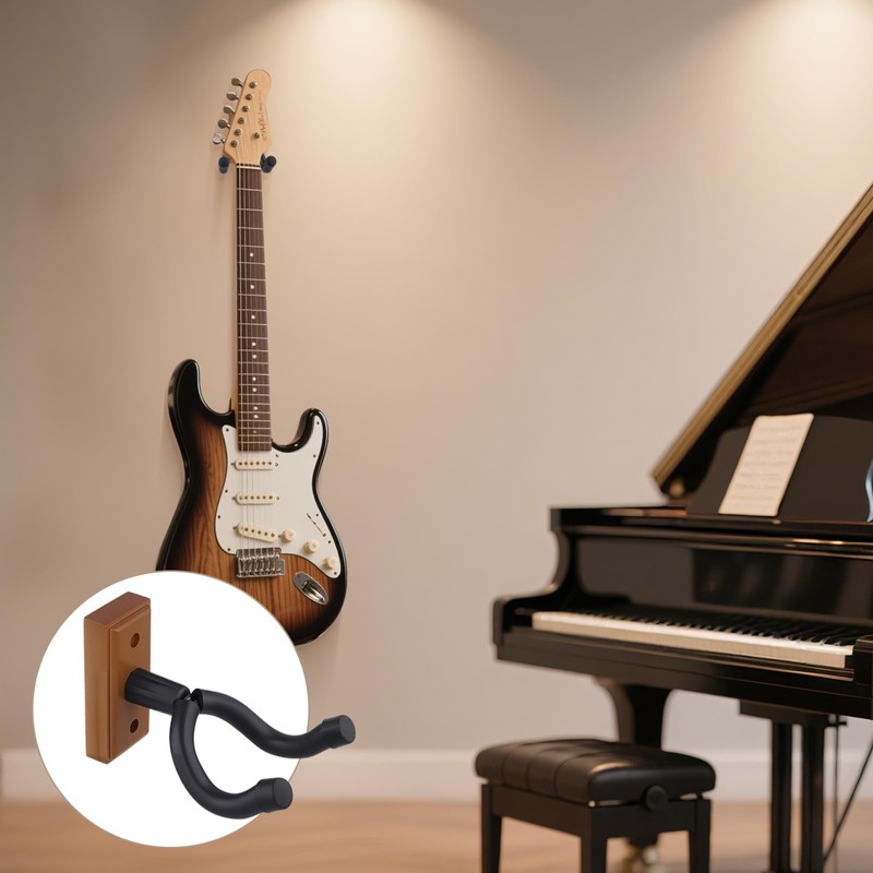 - Verpackung: Set mit 2 Gitarrenwandaufhängern aus Holz ermöglicht es Ihnen, mehrere Instrumente zu präsentieren, perfekt für Heimstudios oder Musikzimmer
