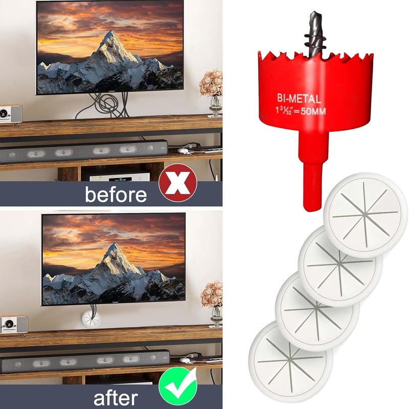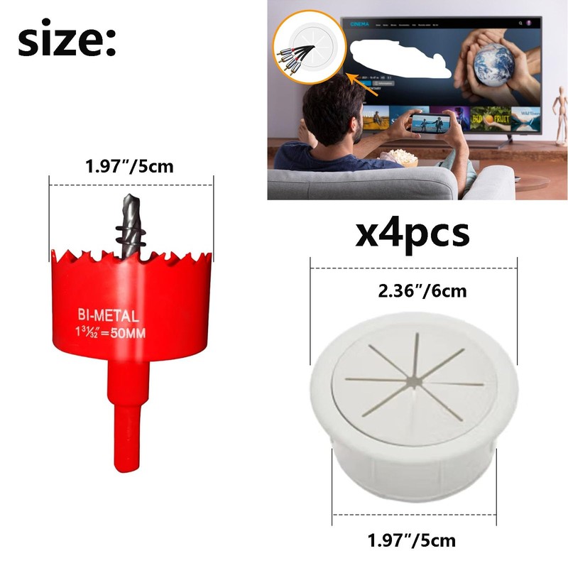 - Comprehensive Kit - Four pass-throughs and a precision hole saw drill attachment, ensuring a smooth setup without the need for additional purchases. The TV's power cord and other cables perfectly within the wall, achieving a clean and wire-free TV setup.