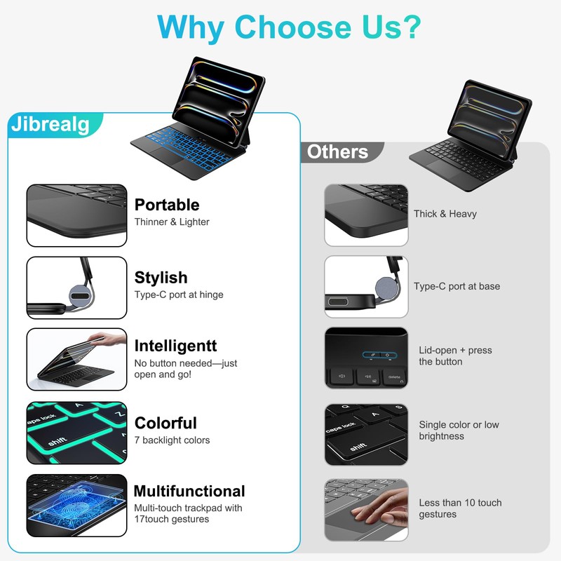 • Ultra-slim & Lightweight: With the industry's slimmest profile, Jibrealg Magic Keyboard elevates creative workflows beyond Ultrabook capabilitie.