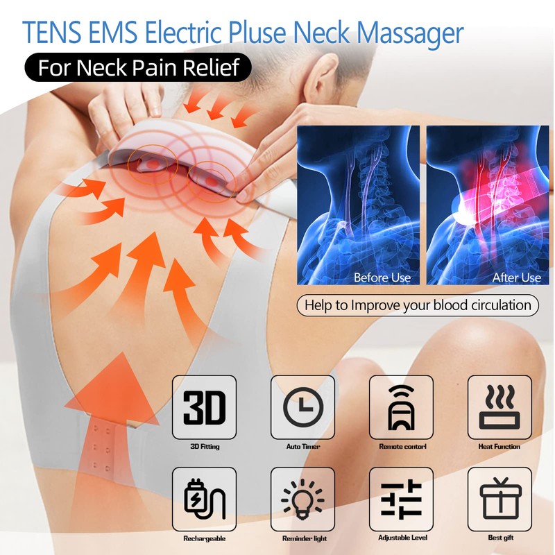 - 【Reduces Fatigue and Pain Relief 】Through low-frequency pulse massager technology deeply relax neck muscles.Different from traditional massagers, it helps to relieve neck pain, shoulder tiredness,improve sleep quality and promote blood circulation effectively .