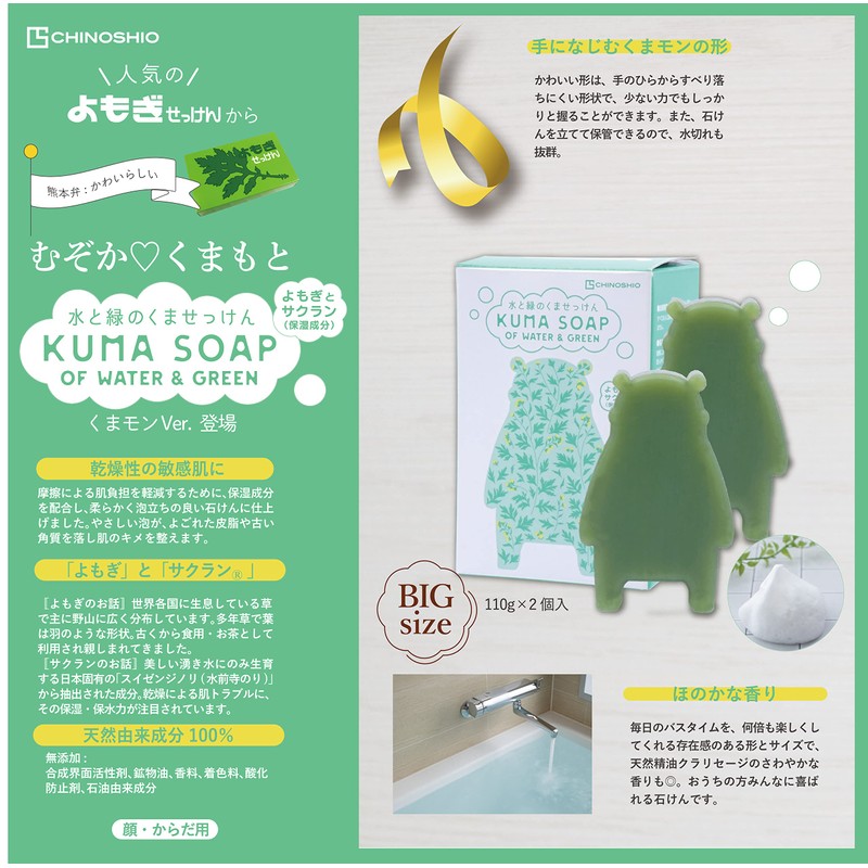 - Formulated with "Yomagi extract" and "cheran" (moisturizing ingredients) produced in Kumamoto Prefecture