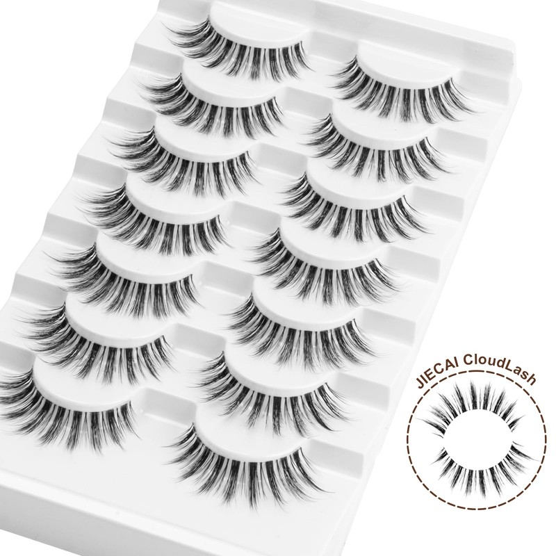 JIECAI Lashes Wispy False Eyelashes Mink Eye Lashes Manga Fake Eyelash D Curl Pestañas Postizas Clear Band Lash Strips That Look Like Extensions, 7 Pairs Pack, Wispy Anime